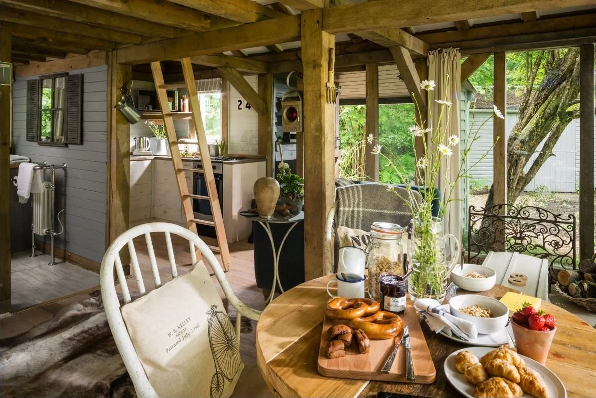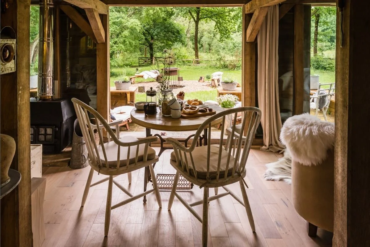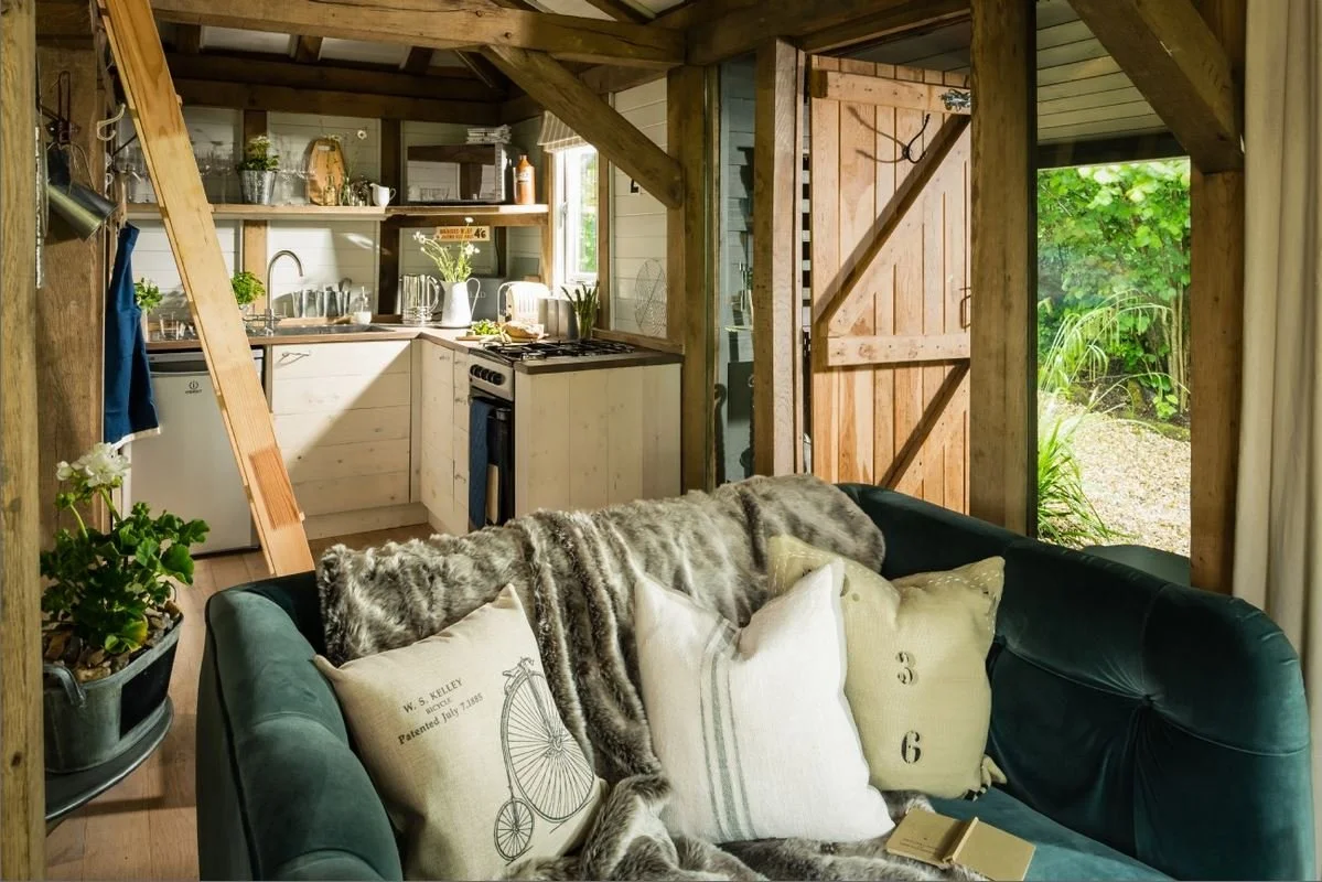 Stunning compact living is provided by this unique oak-framed cabin set in a wood in East Sussex. The cabin has been wonderfully furnished by its owner and is a perfect example of ‘small is beautiful’