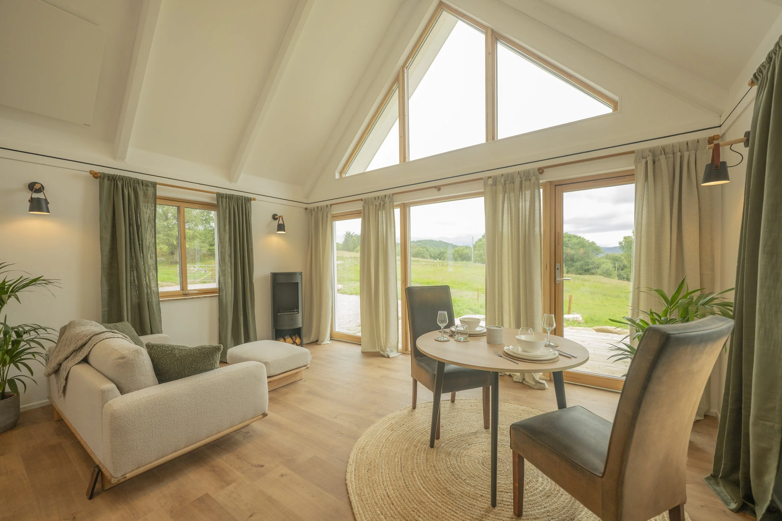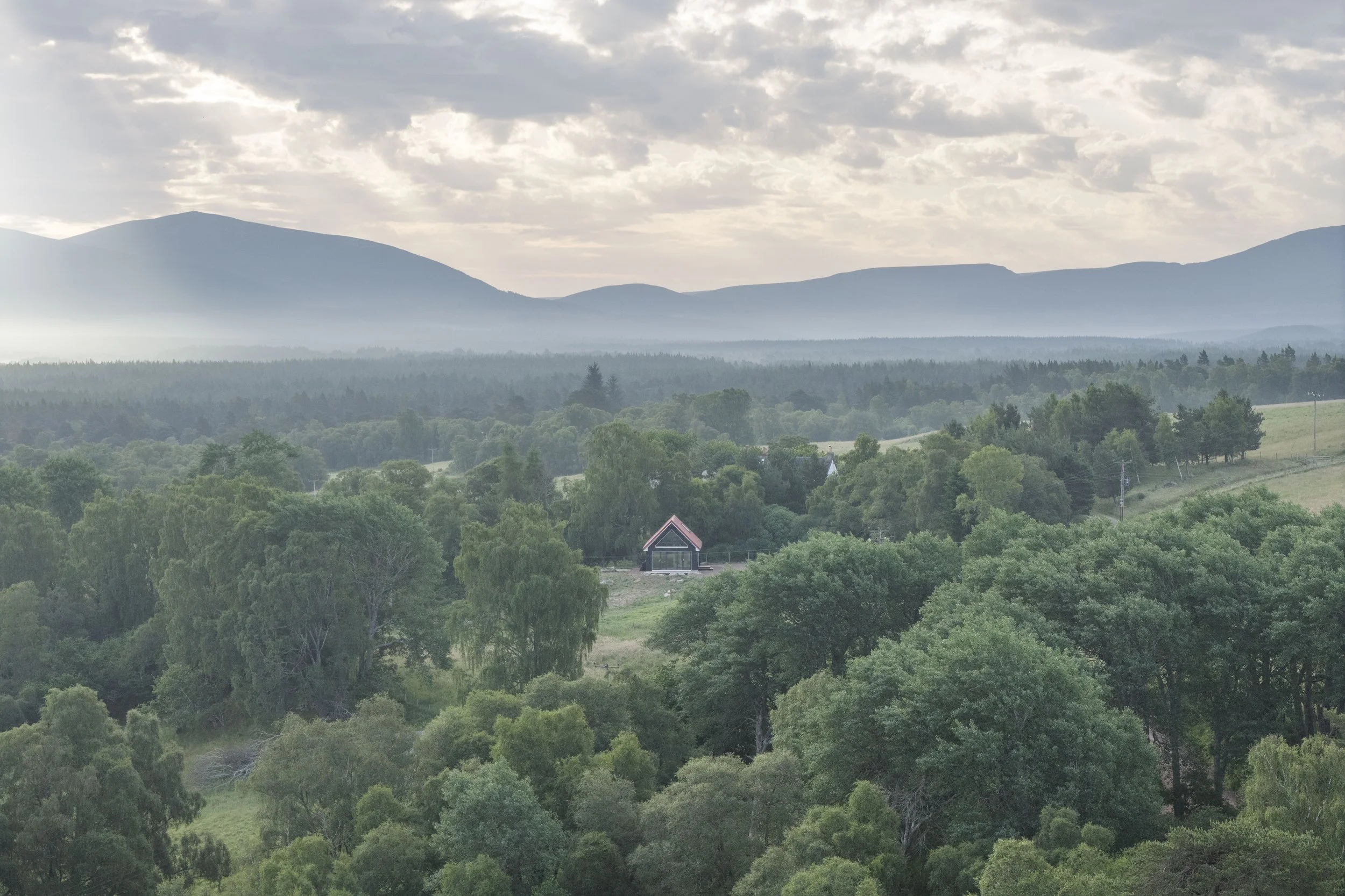 Following the summit, the structure was carefully dismantled, transported, and reassembled within the ancient Caledonian forest of Rothiemurchus Estate. Today, it stands as a living example of how climate-conscious design can meet comfort, style, and connection to nature.