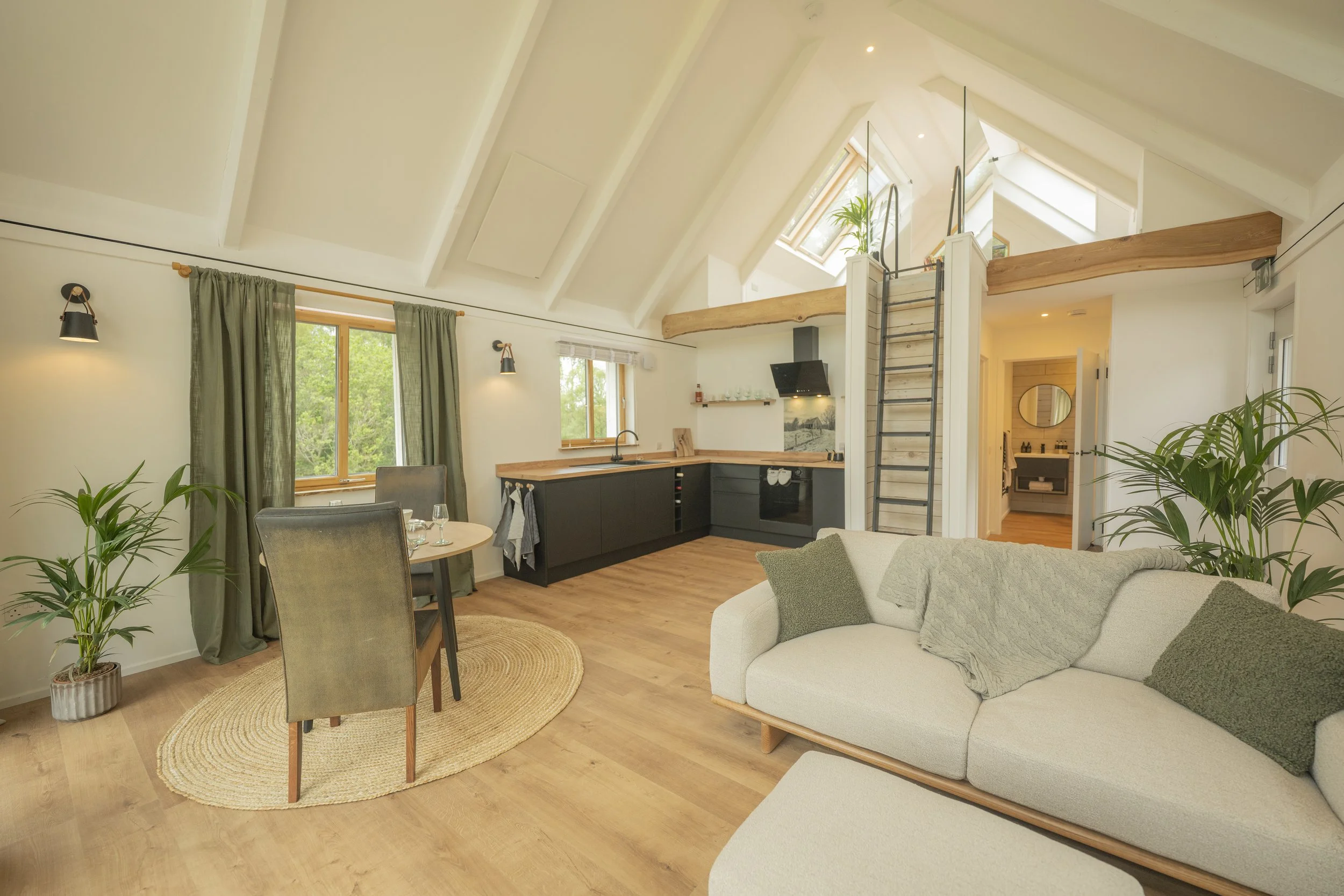 The cabin’s sustainable ethos runs deep. From its low-impact materials, eco products and recycled glassware, to its dog-friendly garden and firepit, every detail encourages thoughtful living and immersive experiences. Guests can explore nearby walking and cycling trails, visit wildlife hides, or simply relax and stargaze from the mezzanine.